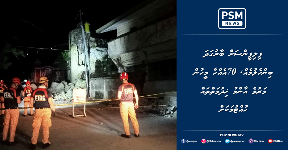 ފިލިޕީންސަށް އައި ބާރުގަދަ ބިންހެލުމެއްގައި މަރުވި މީހުންގެ އަދަދު 69އަށް އުފުލިއްޖެއެވެ. އެ ޤައުމުގެ މެދުތެރޭ ސަރަޙައްދުތަކަށް އައި ބިންހެލުން ރެކޯޑު ކުރެވިފައި ވަނީ ރިކްޓަރ މިންގަނޑުން 6.9ގައެވެ. ބިންހެލުމާ ގުޅިގެން ގެދޮރާއި ވެއްޓިފައިވާ އިމާރާތްތަކުގެ ދަށުގައި ތާށިވެފައިވާ މީހުން ސަލާމަތް ކުރުމަށާއި، ކަރަންޓާއި ފެނުގެ ޚިދުމަތް ކެނޑިފައިވާ ސަރަޙައްދުތަކަށް އެ ޚިދުމަތްތައް އަލުން ގުޅައިދިނުމަށް ކަމާ ގުޅޭ އިދާރާތަކުން ދަނީ މަސައްކަތް ކުރަމުންނެވެ.