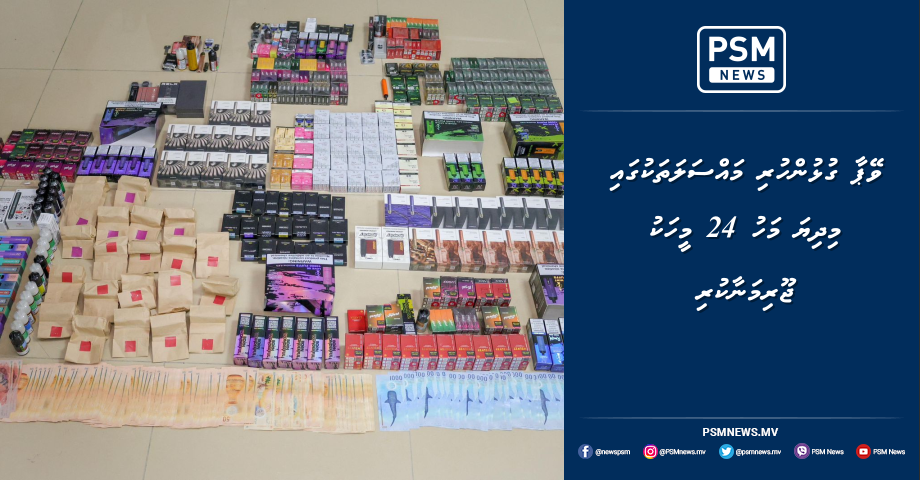 ތަފަސް ހިސާބުތައް ދައްކާގޮތުގައި ވޭޕާ ގުޅޭ މައްސަލަތަކުގައި މިދިޔަ މަހު 24 މީހަކުވަނީ ޖޫރިމަނާކޮށްފައެވެ. އަދި މިމައްސަލަތަކުގައި ޖުމްލަ 136،500 ރުފިޔާއިން ޖޫރިމަނާކޮށްފައިވާކަމަށާއި، މީގެތެރޭގައި ހިމެނެނީ ވޭޕާއި އިލެކްޓްރޯނިކް ވޭޕް އާލާތްތައް ގެންގުޅުނުކަމުގެ 10 މައްސަލައެއްގައި ޖޫރިމަނާކޮށްފައިވާ 41،000 ރުފިޔާއެވެ. އަދި ވޭޕާއި ވޭޕްކުރުމަށް ބޭނުންކުރާ އިލެކްޓްރޯނިކް އާލާތްތައް ބޭނުންކޮށްގެން 14 މައްސަލައެއްގައި ޖޫރިމަނާގެ ގޮތުގައި 95،500 އަރާކަމަށްވެސް ތަފާސް ހިސާބުތަކުން ދައްކައެވެ.
