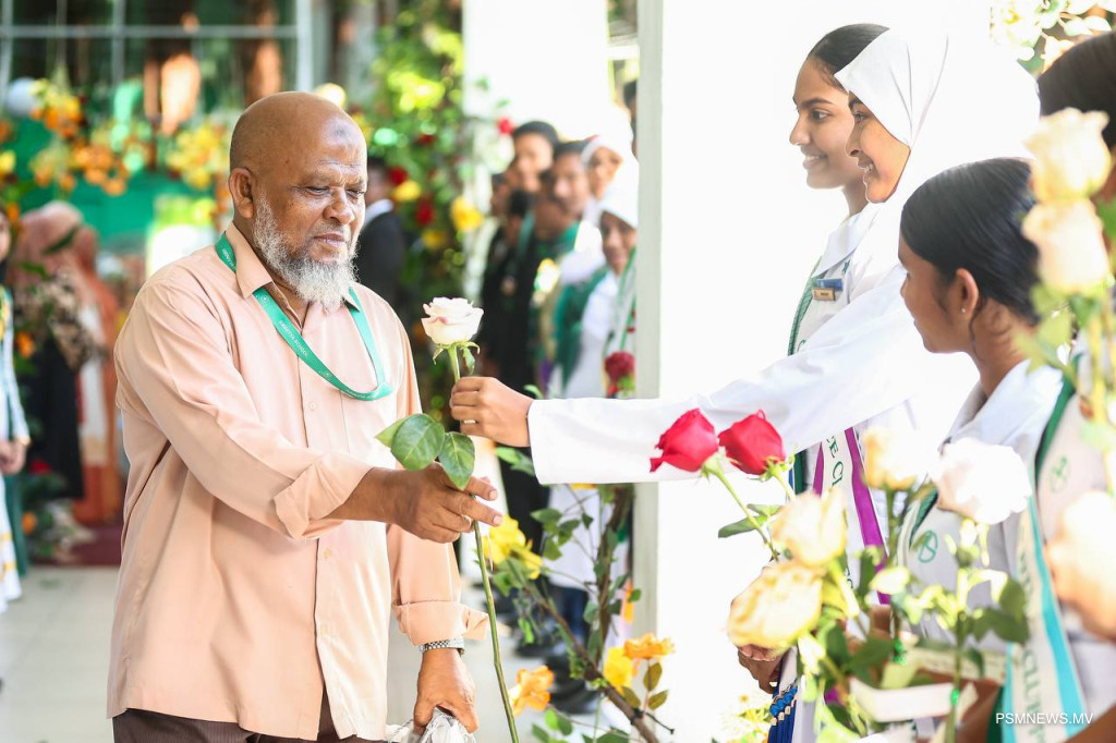 "މުދައްރިސުންނަށްވުރެ ޝަރަފްވެރި ޤަދަރުވެރި އިއްޒަތްތެރި ބަޔަކު ދުނިޔޭގެ އެއްވެސް ޤައުމެއްގަ، އެއީ މިޤައުމުގަ ކަމުގައިވިޔަސް ދުނިޔޭގެ އެއްވެސް ޤައުމެއްގަ ތިބޭނެކަމަކަށް އަޅުގަނޑު ޤަބޫލެއް ނުކުރަން. އެއީ ޕައިލެއްޓެއްކަމުގައި ވިޔަސްމެ، ޑޮކްޓަރެއްކަމުގައި ވިޔަސްމެ، އެކައުންޓެންޓެއްކަމުގައި ވިޔަސްމެ، އިދާރީ ފަންނީ ޤާބިލު މީހަކު ކަމުގައިވިޔަސްމެ، އިންޖިނިއަރެއްކަމުގައި ވިޔަސްމެ، ހުރިހާ ފަންނެއްގެ މީހުން ބިނާކުރާ މޭސްތިރިންނަކީ މުދައްރިސުން." ވަޒީރު ވިދާޅުވިއެވެ.