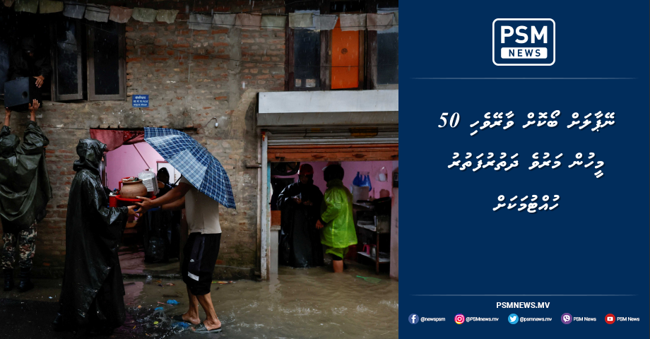 ނޭޕާލަށް މިހާރު ކުރަމުންދާ ވިއްސާރައިގައި، ބޯކޮށް ވާރޭވެހި، އެކި ހިސާބުތަކުގައި ފެންބޮޑުވެ، ބިންގަނޑު ކަނޑައިގެން ދިޔުމުގެ ސަބަބުން، މިހާތަނަށް 50 މީހުން މަރުވެފައިވާކަމަށް އެ ޤައުމުގެ ސަރުކާރުން ބުނެފިއެެވެ.