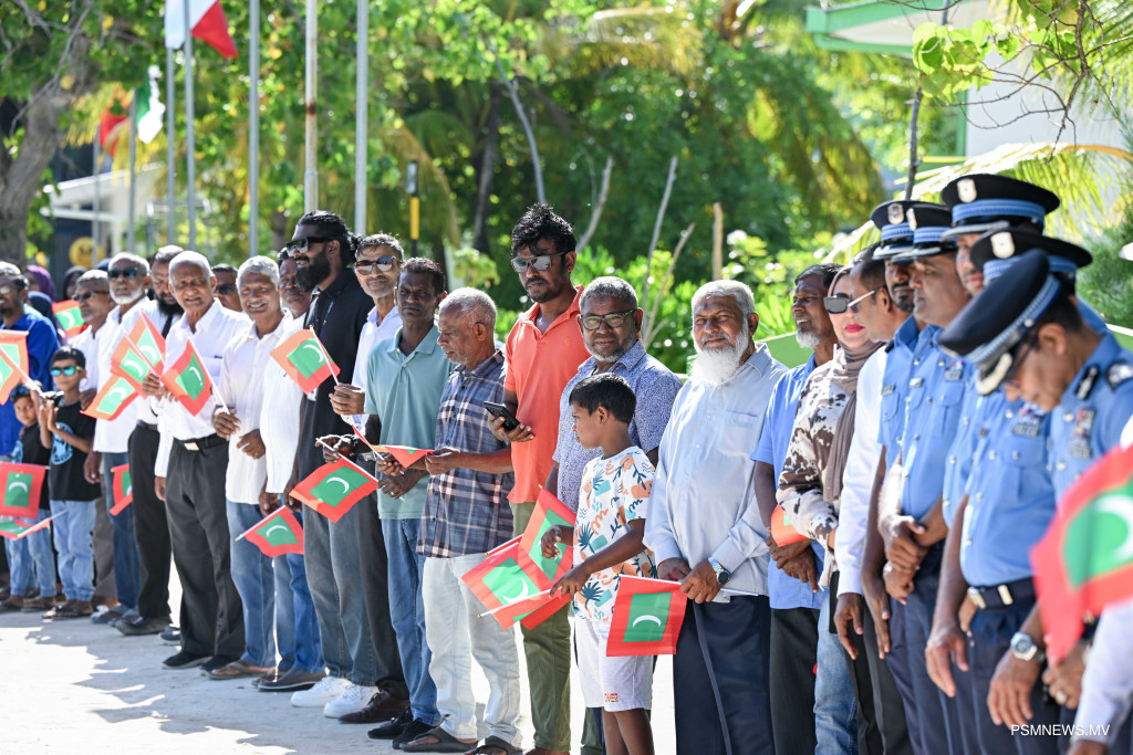 ރައީސުލްޖުމްހޫރިއްޔާ ޑރ. މުޙައްމަދު މުޢިއްޒު، ދަނގެއްޗަށް ވަޑައިގެންނެވުުމުން ރަށުގެ އިދާރާތުގެ އިސްވެރިންނާއި މުވަައްޒަފުން ހިމެނޭހެން އާންމުފަރާތްތަކުން ވަނީ އެމަނިކުފާނަށް ހޫނު މަރުޙަބާއެއް ދަންނަވާފައެވެ.