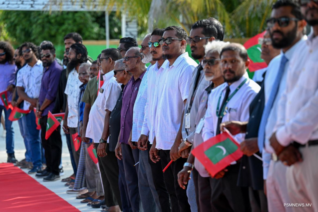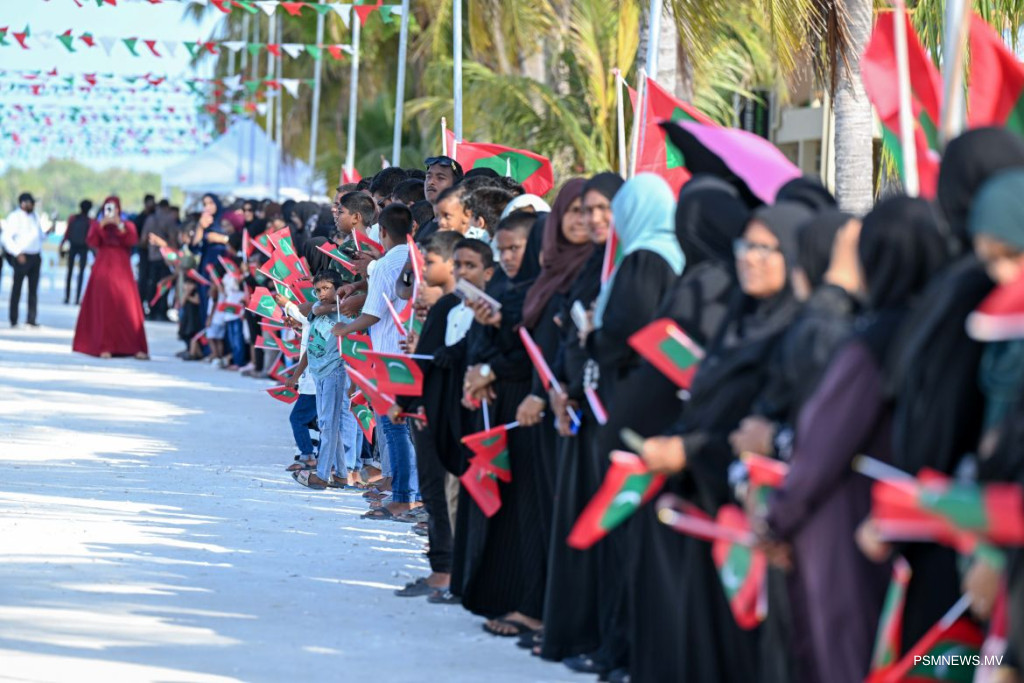 ރައީސްއަށް މަރުހަބާ ދެންނެވުމަށް ފެންފުށި ކައުންސިލްގެ މެމްބަރުންނާއި، ސަރުކާރުގެ މުއައްސަސާތަކުގެ އިތުރުން އާންމުންގެ ގިނަބަޔަކުވަނީ ރަށުގެ ބަނދަރު ސަރަޙައްދަށް ޖަމާވެފައެވެ.