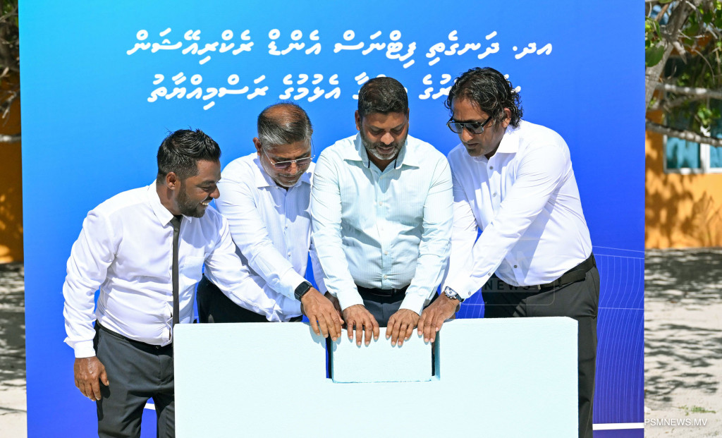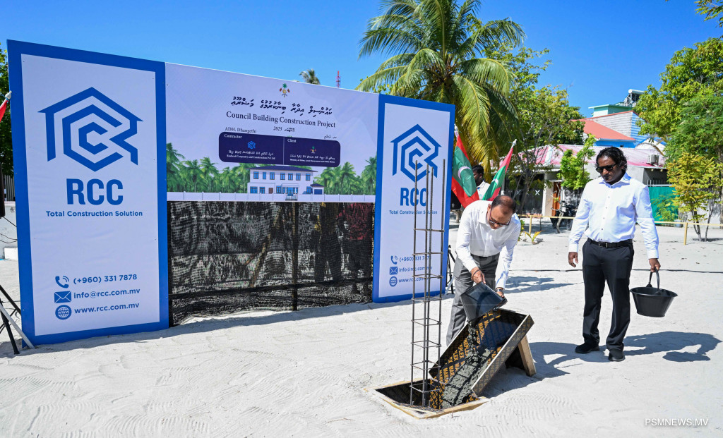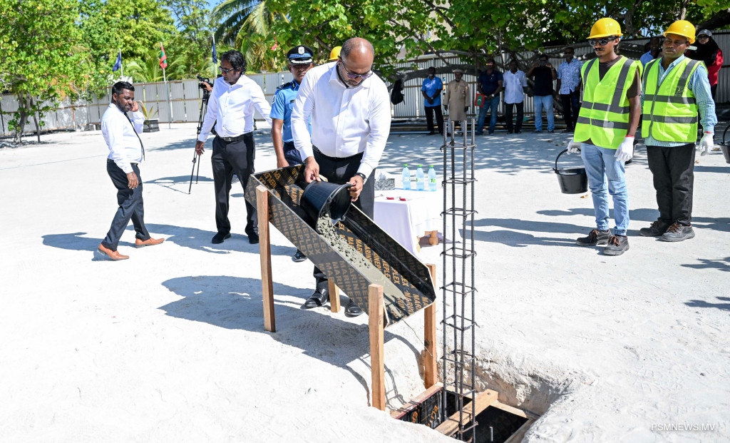 އދ. ދަނގެތީގައި ދަނގެތީ ކައުންސިލް އިދާރާގެ އައު އިމާރާތުގެ ބިންގާ ސިޓީތަކާއި އިދާރީ ދާއިރާތައް ހިންގުމާއި އާންމު މަސައްކަތްތަކާ ބެހޭ ވަޒީރު އާދަމް ޝަރީފު ޢުމަރު އަޅުއްވައިދެއްވަނީ / ފޮޓޯ - ރައީސް އޮފީސް