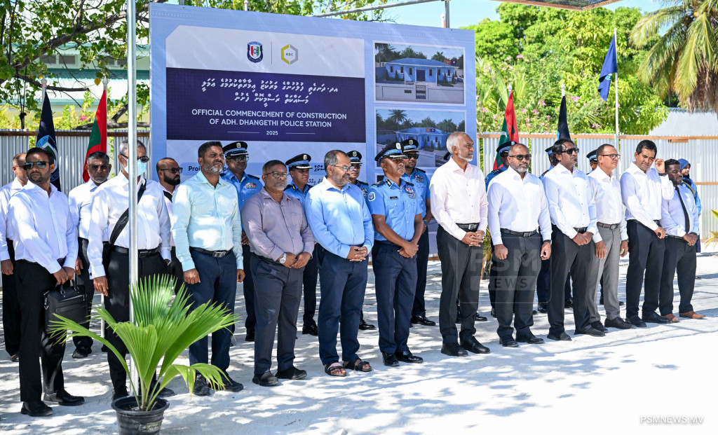 އދ. ދަނގެތީގައި އަލަށް އިމާރާތްކުރާ ފުލުހުންގެ މަރުކަޒުގެ އަމަލީ މަސައްކަތް ފެށުމުގެ ރަސްމިއްޔާތުގައި ރައީސުލްޖުމްހޫރިއްޔާ ޑރ. މުޙައްމަދު މުޢިއްޒު ބައިވެރިވެވަޑައިގަންނަވަނީ / ފޮޓޯ - ރައީސް އޮފީސް