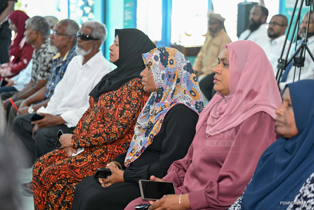 ރައީސުލްޖުމްހޫރިއްޔާ ޑރ. މުޙައްމަދު މުޢިއްޒު އދ ދަނގެތީ ރައްޔިތުންނާއި ބައްދަލުކުރެއްވުމަށް ބޭއްވި ޖަލްސާގެ ތެރެއިން / ފޮޓޯ - ރައީސް އޮފީސް