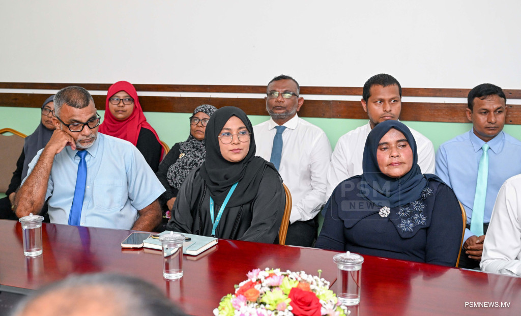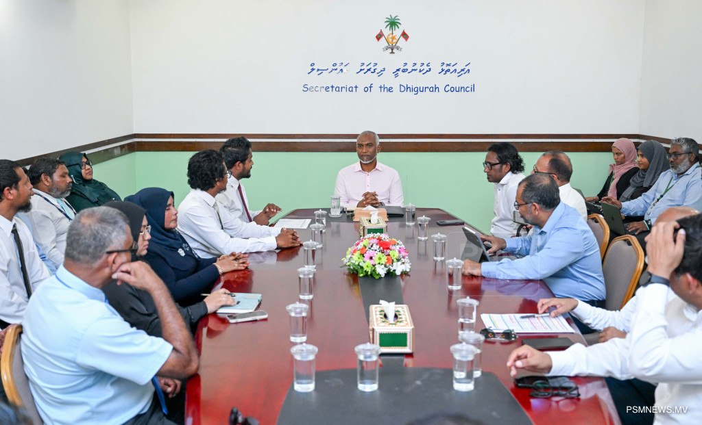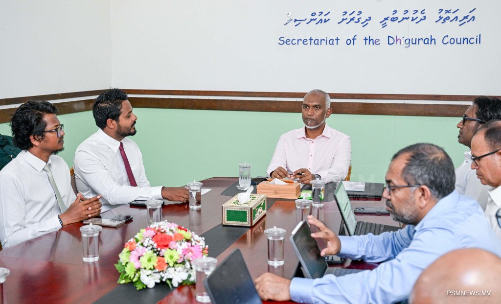 ރައީސުލްޖުމްހޫރިއްޔާ ޑރ. މުޙައްމަދު މުޢިއްޒު އދ. ދިގުރަށު ކައުންސިލާއި، އ.ތ.މ ކޮމިޓީ އަދި ރަށުގެ މުއައްސަސާތަކުގެ އިސްވެރިންނާއި ބައްދަލުކުރެއްވުން / ފޮޓޯ - ރައީސް އޮފީސް