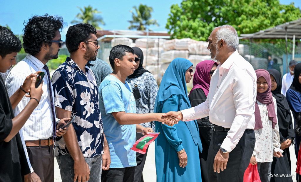 ރައީސުލްޖުމްހޫރިއްޔާ ޑރ. މުޙައްމަދު މުޢިއްޒު އދ. ދިގުރަށު ރައްޔިތުންނާއި ބައްދަލުކުރެއްވުމުގެ ތެރެއިން / ފޮޓޯ - ރައީސް އޮފީސްސް