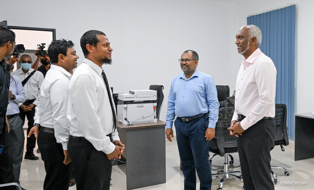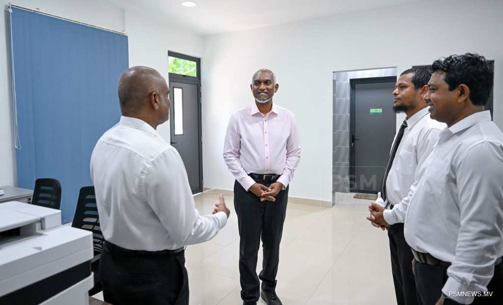 އދ. ދިގުރަށު ސިއްޙީ މަރުކަޒުގެ އެކްސްޓެންޝަން އިމާރާތް ރައީސުލްޖުމްހޫރިއްޔާ ޑރ. މުޙައްމަދު މުޢިއްޒު ބައްލާވާލައްވަނީ / ފޮޓޯ - ރައީސް އޮފީސް
