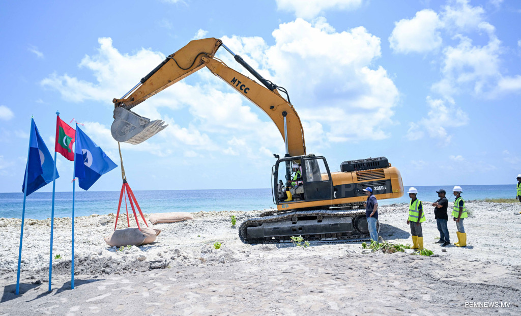 އދ. ދިގުރަށުގެ ގޮނޑުދޮށް ހިމާޔަތް ކުރުމުގެ ޢަމަލީ މަސައްކަތް ފެށުމުގެ ރަސްމިއްޔާތުގައި ރައީސުލްޖުމްހޫރިއްޔާ ޑރ. މުޙައްމަދު މުޢިއްޒު ބައިވެރިވެވަޑައިގަންނަވަނީ / ފޮޓޯ - ރައީސް އޮފީސް