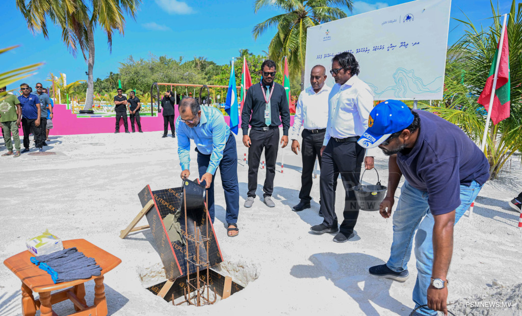 އދ. ދިއްދޫ ފުޓްސަލް ދަނޑު ތަރައްގީކުރުމުގެ މަޝްރޫއުގެ އަމަލީ މަސައްކަތް ކުޅިވަރާއި ހަށިހެޔޮކަމާ ބެހޭ ވަޒީރު ޢަބްދުالله ރާފިޢު ފައްޓަވައިދެއްވަނީ / ފޮޓޯ - ރައީސް އޮފީސް