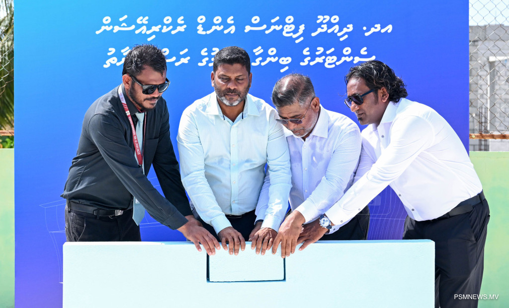 އދ. ދިއްދޫ ފިޓްނަސް އެންޑް ރެކްރިއޭޝަން ސެންޓަރުގެ ބިންގާ ކުޅިވަރާއި ހަށިހެޔޮކަމާ ބެހޭ ވަޒީރު ޢަބްދުالله ރާފިޢު އަޅުއްވައި ދެއްވަނީ / ފޮޓޯ - ރައީސް އޮފީސް