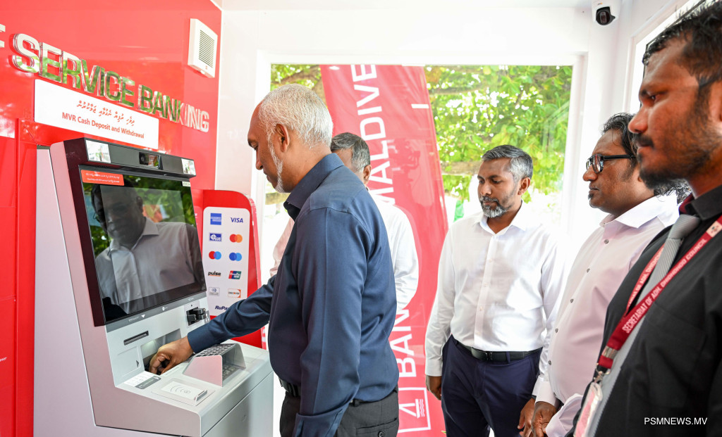އދ. ދިއްދޫ ބީއެމްއެލްގެ އޭޓީއެމްގެ ޚިދުމަތް ރައީސުލްޖުމްހޫރިއްޔާ ޑރ. މުޙައްމަދު މުޢިއްޒު ފައްޓަވައިދެއްވަނީ / ފޮޓޯ - ރައީސް އޮފީސް