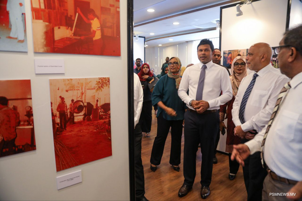 ރާއްޖޭގައި ވޮކޭޝަނަލް ތަޢުލީމުގެ ފެށިތާ 50 އަހަރު ފުރުން ފާހަގަކުރުމަށް، ޕޮލިޓެކްނިކުން ކުރިއަށްގެންދާ ފޮޓޯ މައުރަޒު ރައީސުލްޖުމްހޫރިއްޔާގެ ނައިބު އަލްއުސްތާޛު ޙުސައިން މުޙައްމަދު ލަތީފު ހުޅުވައިދެއްފައިފިއެވެ. "ވޮކޭޝަނަލް ޖަރނީ އިން ފްރޭމްސް" ނަމުގައި ކުރިއަށްގެންދާ ފޮޓޯ މައުރަޒުގައި 150އަށްވުރެ ގިނަ ފޮޓޯވަނީ ބަހައްޓާފައެވެ.