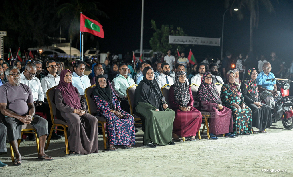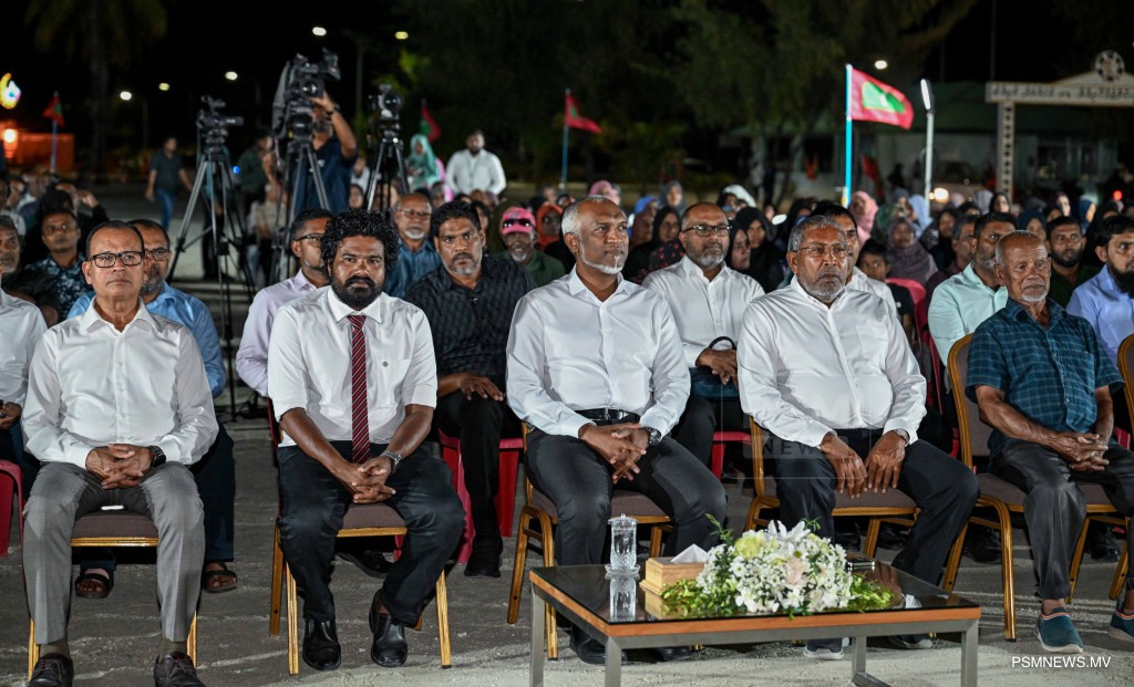 ރައީސުލްޖުމްހޫރިއްޔާ ޑރ. މުޙައްމަދު މުޢިއްޒު އދ. މާމިގިލި ރައްޔިތުންނާއި ބައްދަލުކުރެއްވުމަށް ބޭއްވި ޖަލްސާގެ ތެރެއިން / ފޮޓޯ - ރައީސް އޮފީސް