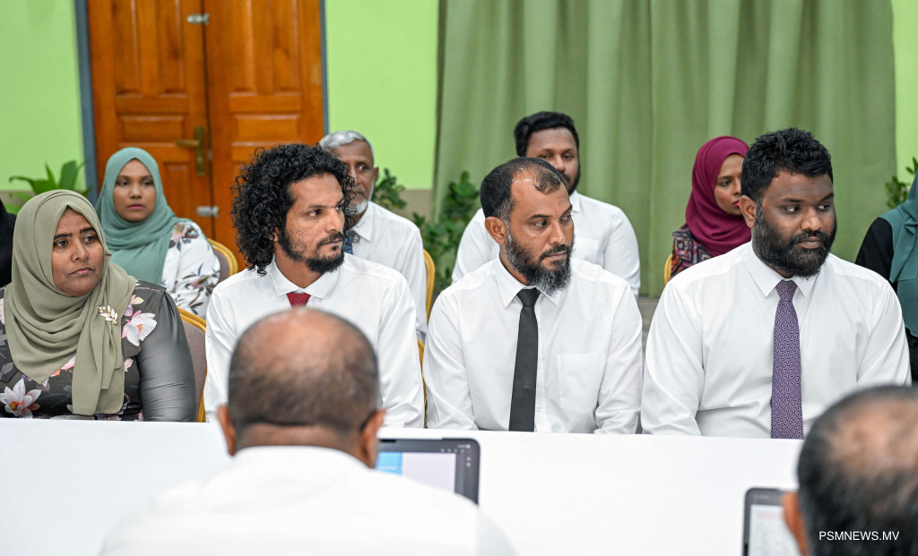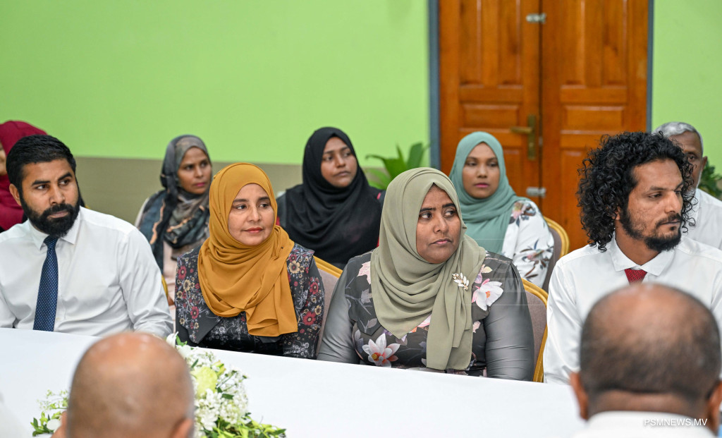 ރައީސުލްޖުމްހޫރިއްޔާ ޑރ. މުޙައްމަދު މުޢިއްޒު އދ. މާމިގިލި ކައުންސިލާއި، އ.ތ.މ ކޮމިޓީ އަދި ރަށުގެ މުއައްސަސާތަކުގެ އިސްވެރިންނާއި ބައްދަލުކުރެއްވުން / ފޮޓޯ - ރައީސް އޮފީސް
