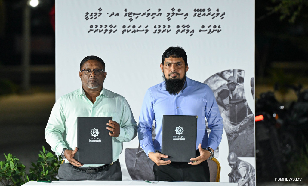 ބީއެމްއެލް އދ. މާމިގިލި ބްރާންޗްގެ ޢަމަލީ މަސައްކަތް މާލީ ކަންކަމާއި ތަރައްޤީގެ ރޭވުންތެރިކަމާއި ބެހޭ ވަޒީރު މޫސާ ޒަމީރު އަދި މާމިގިލީ ދާއިރާގެ މެންބަރު ގާސިމް އިބްރާޙީމް ފައްޓަވައިދެއްވަނީ / ފޮޓޯ - ރައީސް އޮފީސް