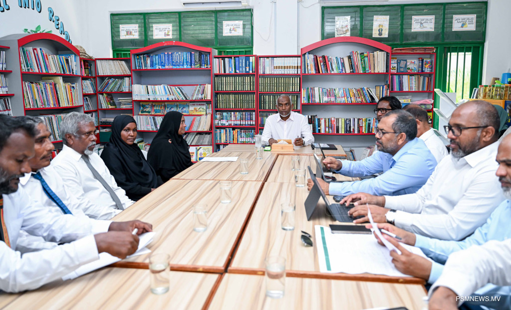 ރައީސުލްޖުމްހޫރިއްޔާ ޑރ. މުޙައްމަދު މުޢިއްޒު އދ. އޮމަދޫ ކައުންސިލާއި، އ.ތ.މ ކޮމިޓީ އަދި ރަށުގެ މުއައްސަސާތަކުގެ އިސްވެރިންނާއި ބައްދަލުކުރެއްވުން / ފޮޓޯ - ރައީސް އޮފީސް