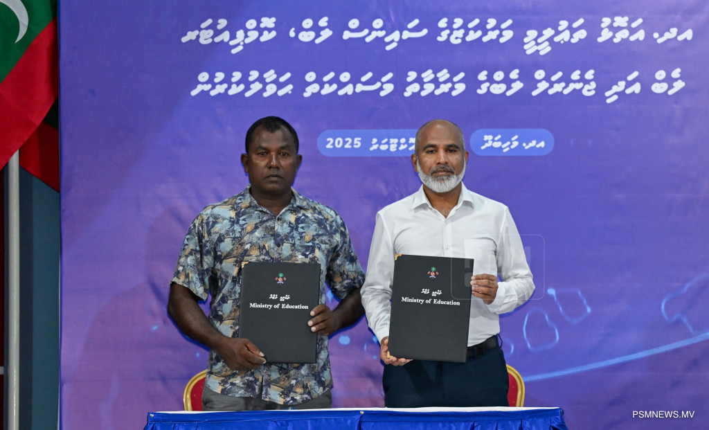 އދ. އަތޮޅު ތަޢުލީމީ މަރުކަޒުގެ ސައިންސް ލެބް،ކޮމްޕިޔުޓަރ ލެބް އަދި ޖެނެރަލް ލެބް މަރާމާތު މަސއްކަތް ހަވާލުކުރުމުގެ އެއްބަސްވުމުގައި ސޮއިކުރުން / ފޮޓޯ - ރައީސް އޮފީސް