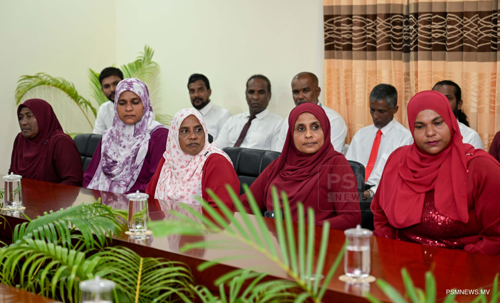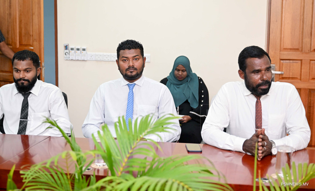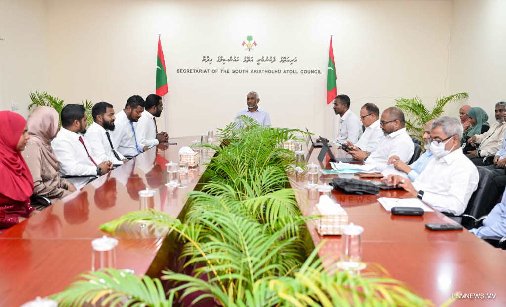 ރައީސުލްޖުމްހޫރިއްޔާ ޑރ. މުޙައްމަދު މުޢިއްޒު އދ. މަހިބަދޫ ކައުންސިލާއި، އ.ތ.މ ކޮމިޓީ އަދި ރަށުގެ މުއައްސަސާތަކުގެ އިސްވެރިންނާއި ބައްދަލުކުރެއްވުން / ފޮޓޯ - ރައީސް އޮފީސް