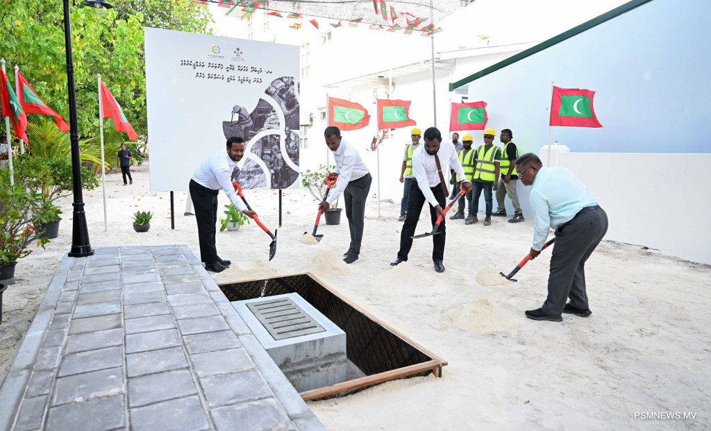އދ. މަހިބަދޫގެ މަގުތައް ޒަމާނީ ފެންވަރަށް ތަރައްޤީކުރުމުގެ 2ވަނަ ފިޔަވަހީގެ މަސައްކަތް އިމާރާތް ކުރުމާއި ގެދޮރުވެރިކަމާ ބިނާރާ ބެހޭ ވަޒީރު ޑރ. ޢަބްދުﷲ މުއްޠަލިބް ފައްޓަވައި ދެއްވަނީ / ފޮޓޯ: ރައީސް އޮފީސް