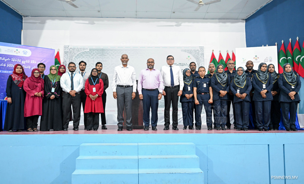 ދިވެހި ޕާސްޕޯޓު އަދި އައިޑީ ކާޑް ޚިދުމަތް ފެށުމުން ރާއްޖޭގެ ހުރިހާ އަތޮޅެއްގައި މި ޚިދުމަތް ޤާއިމްކުރުން ފާހަގަ ކުރުމުގެ ގޮތުން ރައީސުލްޖުމްހޫރިއްޔާ ޑރ. މުޙައްމަދު މުޢިއްޒު ދެވުޒާރާގެ މުވައްޒަފުންނާއިއެކު / ފޮޓޯ: ރައީސް އޮފީސް