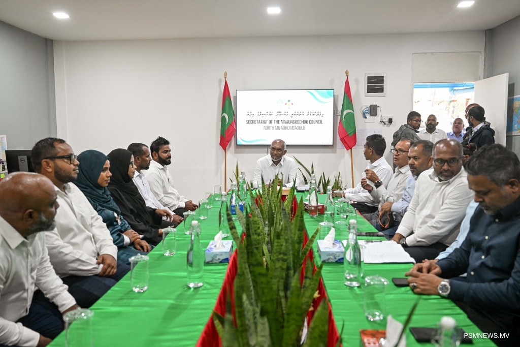 ރައީސުލްޖުމްހޫރިއްޔާގެ މި ދަތުރުފުޅުތަކުގައި، ރަށްރަށުގެ ކައުންސިލްތަކާއި އަންހެނުންގެ ތަރައްޤީއަށް މަސައްކަތްކުރާ ކޮމިޓީތަކާ ބައްދަލުކުރައްވައި، ރަށްރަށުގެ ތަރައްޤީއަށް ބޭނުންވާ ކަންކަމާއި ރައްޔިތުން އެންމެ އެދޭ ކަންކަމާ ގުޅޭގޮތުން މަޝްވަރާ ކުރައްވާފައިވެއެވެ. އަދި ރަށްރަށުގެ ރައްޔިތުންނާ ބައްދަލުކުރައްވައި، އެ ރައްޔިތުންގެ ހާލު ބައްލަވާ، އެކި ކަންކަމުގައި ރައްޔިތުންގެ ފަރާތުން ހިއްސާކުރެއްވި ވާހަކަތައް އަޑުއެއްސެވިއެވެ.