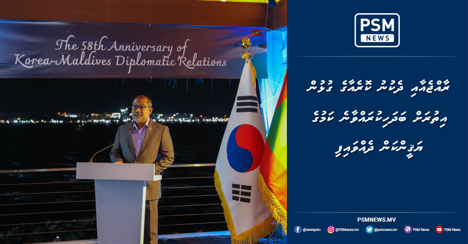 ދެ ޤައުމުގެ ގުޅުމަށް އަލިއަޅުވައި ޚާރިޖީ ވަޒީރު ވާހަކަ ދައްކަވާފައިިވަނީ، ދެކުނު ކޮރެއާއި ރާއްޖެއާއި ދެމެދު ސިޔާސީ ގުޅުން ޤާއިމްވިތާ 58 އަހަރު ފުރުން ފާހަގަކޮށް ބޭއްވި ޖާފަތުގައެވެ. މިއީ، ރާއްޖޭގައި ހުންނަ ދެކުނު ކޮރެއާ ސަފީރު މިޔޮން ލީ އިންތިޒާމްކުރައްވައިގެން ބޭއްވި ޖާފަތެކެވެ.