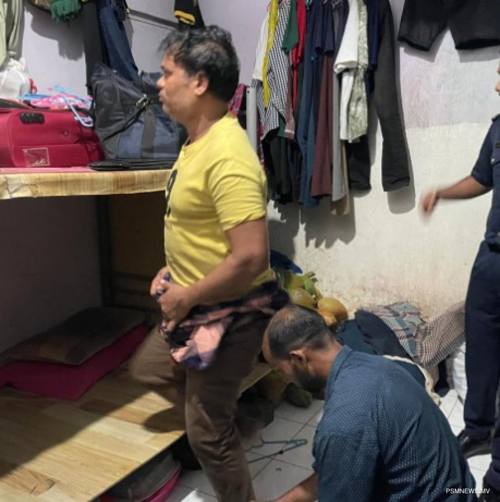 ދިވެހި ފުލުހުންގެ ޚިދުމަތާއި އިމިގްރޭޝަނުން އިއްޔެ ހިންގި އޮޕަރޭޝަނެއްގައި ބިދޭސީން ދިރިއުޅޭ ތަނެއް ބަލައި ފާސްކޮށް، ބަންގްލަދޭޝް 2 ފިރިހެނަކު ވަނީ އިމިގްރޭޝަންގެ ބެލުމުގެ ދަށަށް ގެންގޮސްފައެވެ.