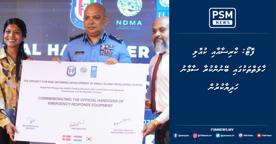 ކާރިސާއާއި އެހެނިހެން ކުއްލި ހާލަތްތަކުގައި ބޭނުންކުރާ ސާމާނު ދިވެހި ފުލުހުންނަށް ހަދިޔާކުރުމަށް ބޭއްވި ރަސްމިއްޔާތުގެ ތެރެއިން / ފޮޓޯ: މުޙައްމަދު ވަޙީދު، ޕީއެސްއެމް ނިއުސް