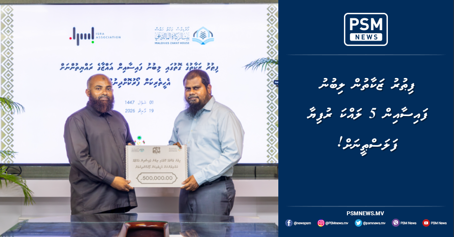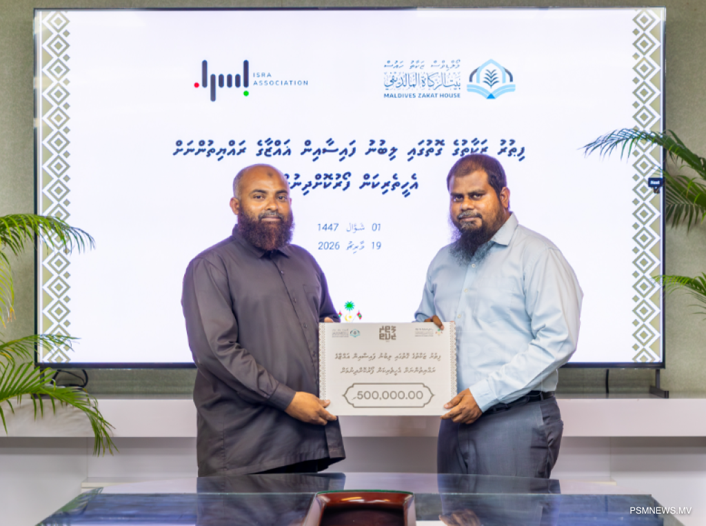 ފިޠުރު ޒަކާތުގެ ގޮތުގައި ލިބުނު ފައިސާގެ ތެރެއިން 5 ލައްކަ ރުފިޔާ، ފަލަޞްޠީނުގެ ޣައްޒާގައި ހާލުގައި ޖެހިފައިވާ ރައްޔިތުންނަށް ކާބޯތަކެތީގެ އެހީތެރިކަން ފޯރުކޮށްދިނުމަށް އިސްރާ އެސޯސިއޭޝަން މޯލްޑިވްސް އާއި ހަވާލު ކޮށްފިއެވެ.