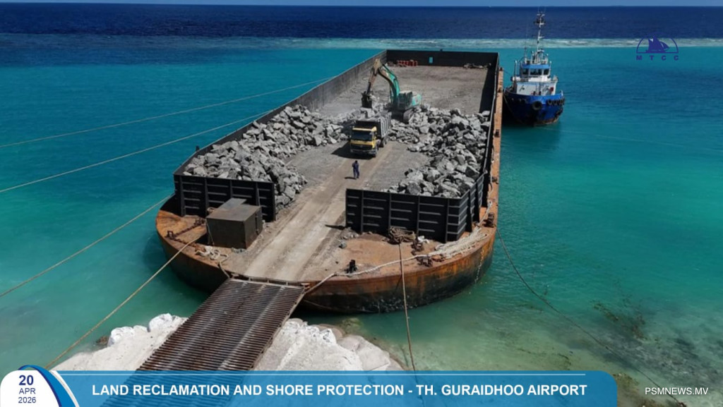 އެމްޓީސީސީން ވިދާޅުވީ މުޅި މަޝްރޫޢުގެ %76 ގެ މަސައްކަތް ނިމިފައިވާކަމަށެވެ. ބިން ހިއްކަން ވެލި އަޅާ ނިމި، މިހާރު ކުރަމުންދަނީ ހިއްކި ސަރަޙައްދު ޙިމާޔަތްކުރަން ބޮޑު ހިލައިގެ ރިވެޓްމަންޓް ޖެހުމުގެ މަސައްކަތެވެ. އެގޮތުން 17،000ޓަނުގެ ބޮޑުހިލައިގެ އިތުރު ޝިޕްމަންޓެއް ވަނީ ގެންގޮސްފައެވެ.