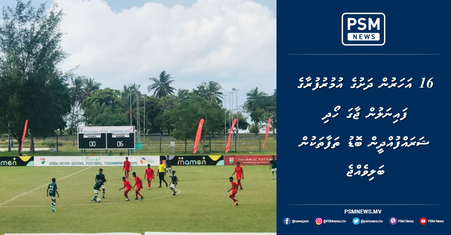 މަމެން އައްޑޫ އިންޓަރ ސްކޫލް 16 އަހަރުންދަށުގެ ފައިނަލުން ޖާގަ ހޯދި ޝަރައްފުއްދީން ސްކޫލް އިރުޝާދިއްޔާ ސްކޫލާއި ވާދަކޮށް ބޮޑު ތަފާތަކުން ބަލިވެއްޖެއެވެ. މިމެޗް އިރުޝާދިއްޔާ ސްކޫލުން ކާމިޔާބުކޮށްފައިވަނީ 7 ލަނޑު 0 ލަނޑުންނެވެ. 5 ޓީމް ހިމެނޭ މި ގުރޫޕްގައި ޝަރަފުއްދީން މިހާރު 4 މެޗް ކުޅެފައުވާއިރު އެޓީމްއަށްވަނީ 9 ޕޮއިންޓް ލިބިފައެވެ. ޝަރަފުއްދީން ސްކޫލްއަށް ވުރެއް އެއް މެޗް މަދުން ކުޅެފައިވާ އިރުޝާދިއްޔާ ސްކޫލްއަށް 7 ޕޮއިންޓް ލިބިފައިވާއިރު ސ.އަތޮޅު މަރަދުސާއަށް 6 ޕޮއިންޓް ލިބިފައިވެއެވެ. ފައިނަލްގެ 2ވަނަ ޖާގަ ޔަގީންވަނީ މިއަންނަ ބުރާސްފަތި ދުވަހު ސ.އަތޮޅު މަދަރުސާ އާއި އިރުޝާދިއްޔާ ސްކޫލް ވާދަކުރާ މެޗުންނެވެ. މިމެޗުން ކޮންމެ ޓީމްއެއް މޮޅުވިކަމަށް ވީނަމަވެސް އެޓީމްއަކަށް ފައިނަލްގެ ޖާގައެއް ޔަގީންވާނެއެވެ.